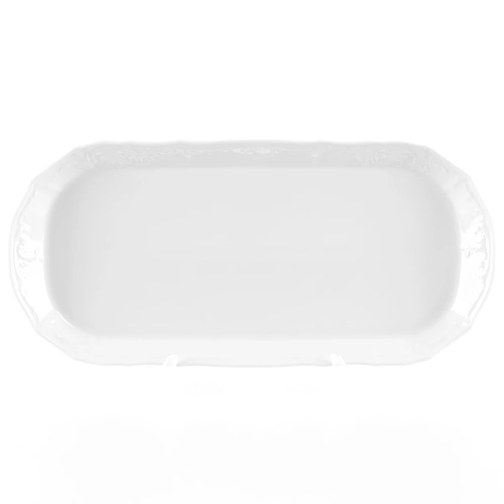 Поднос Bernadotte Недекорированный 37 см Такой поднос очень удобен для подачи бутербродов и других закусок к столу – каждому гостю будет легко дотянуться к лакомству. Поднос из чешского фарфора гармонично дополнит другие предметы сервировки из коллекции Bernadotte Недекорированный. Об удобстве эксплуатации позаботятся ручки по бокам изделия. Красивая посуда и аксессуары от чешского бренда Bernadotte: для того, чтобы уютно было в каждом доме. Диаметр см.