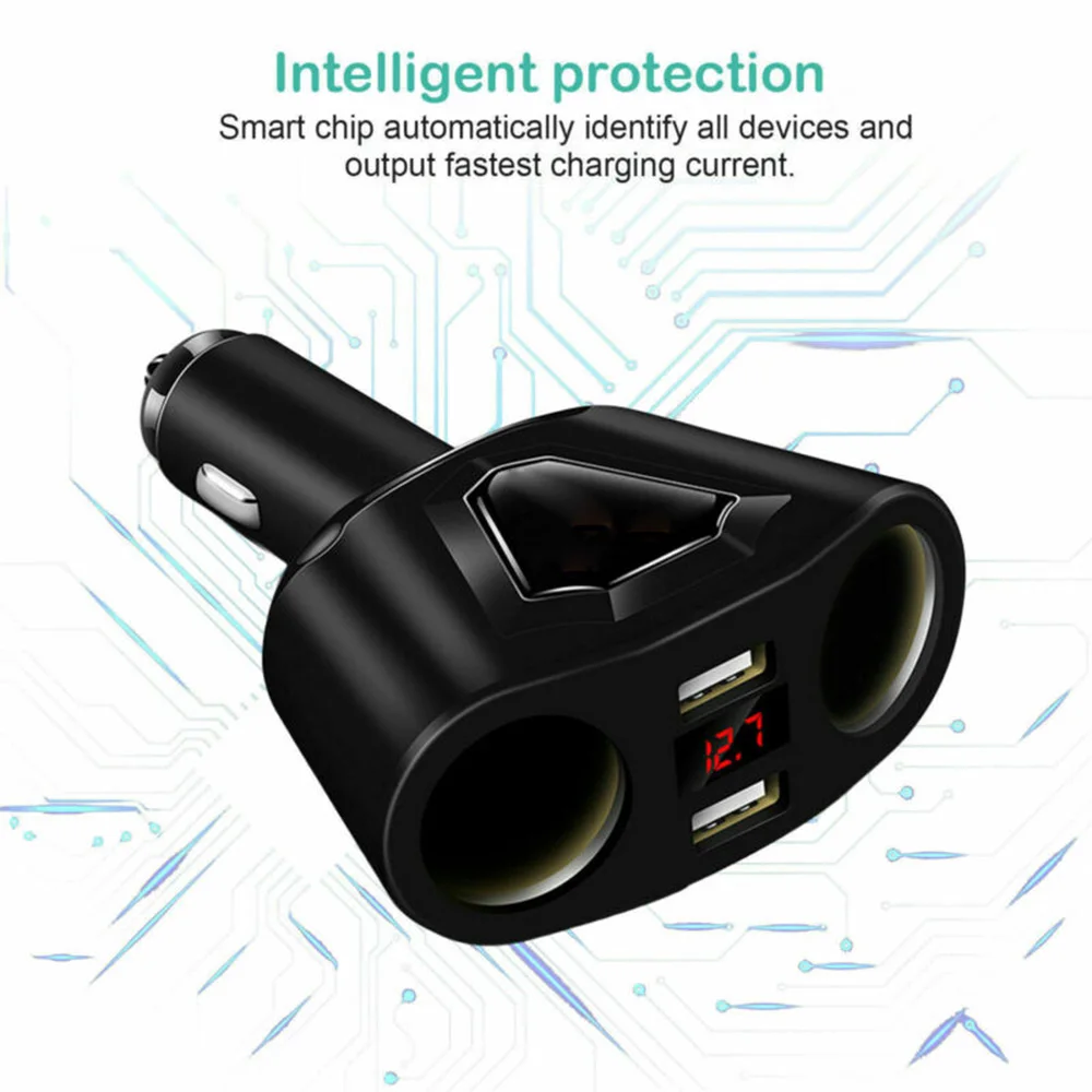 Двойной USB и дизайн прикуривателя, это автомобильное зарядное устройство поддерживает одновременную зарядку двух устройств. Максимальный выходной ток до 5 В 3,1 А. Высокая эффективность с низким нагревом, умной защитой, ЖК-дисплеем и быстрой зарядкой. Подходит для различных автомобилей, таких как грузовик, для внедорожников, внедорожников, автобусов и т. д.