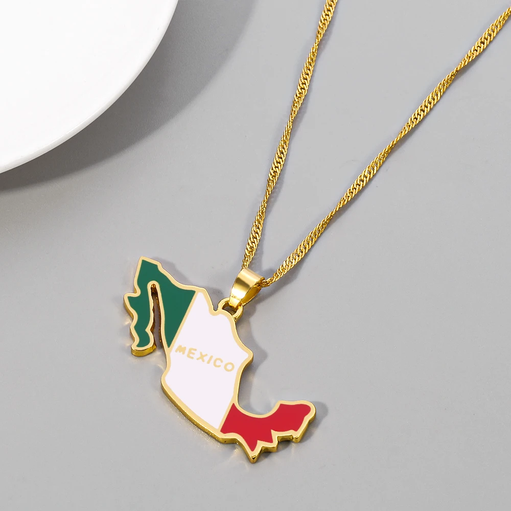 Mexico Map With Flag Pendant Chain Necklaces for Women Jewelry Gold Color North America Mexican Patriotic and Color Enamel Gifts
