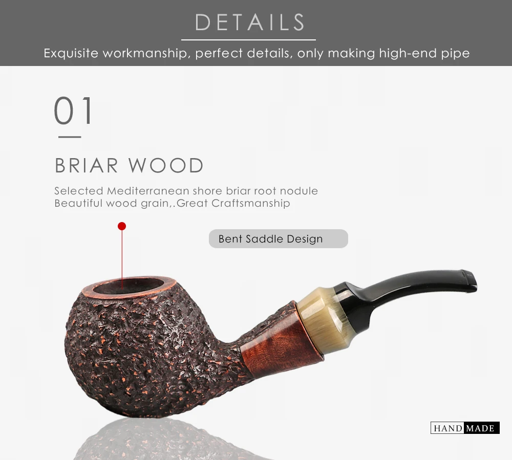 (Package Including) ▷Gift Box -1 pcs Gift Box ▷Pipe - 1 pcs Briar Pipe ▷Free Pipe Smoking Accessories - 1 pcs box Bag - 1 pcs Flannelette bag - 1 pcs 3in1 Multi-function knife - 2 pcs Combustion Mesh - 2 pcs 3mm Metal filters - 10 pcs Cleaning rod ------------------------------------------