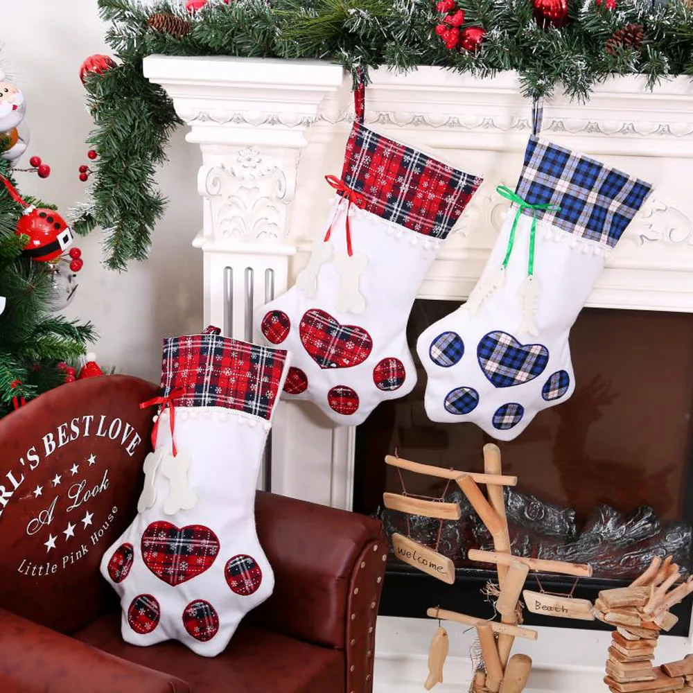 Счастливого Рождества коготь когтей носки плюшевые на дерево висящий подарок конфеты Большие носки украшения