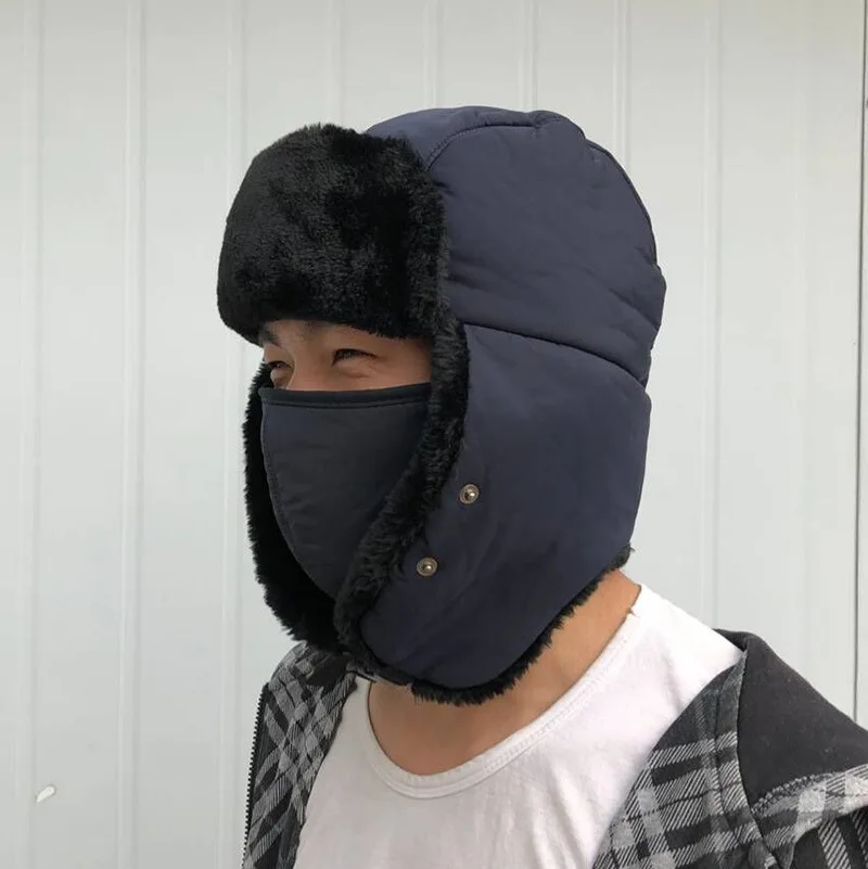 Новая зимняя мужская уличная супер теплая шапка из кроличьего меха, шапки-бомберы из натурального мягкого меха кролика Рекс, шапки с защитой ушей