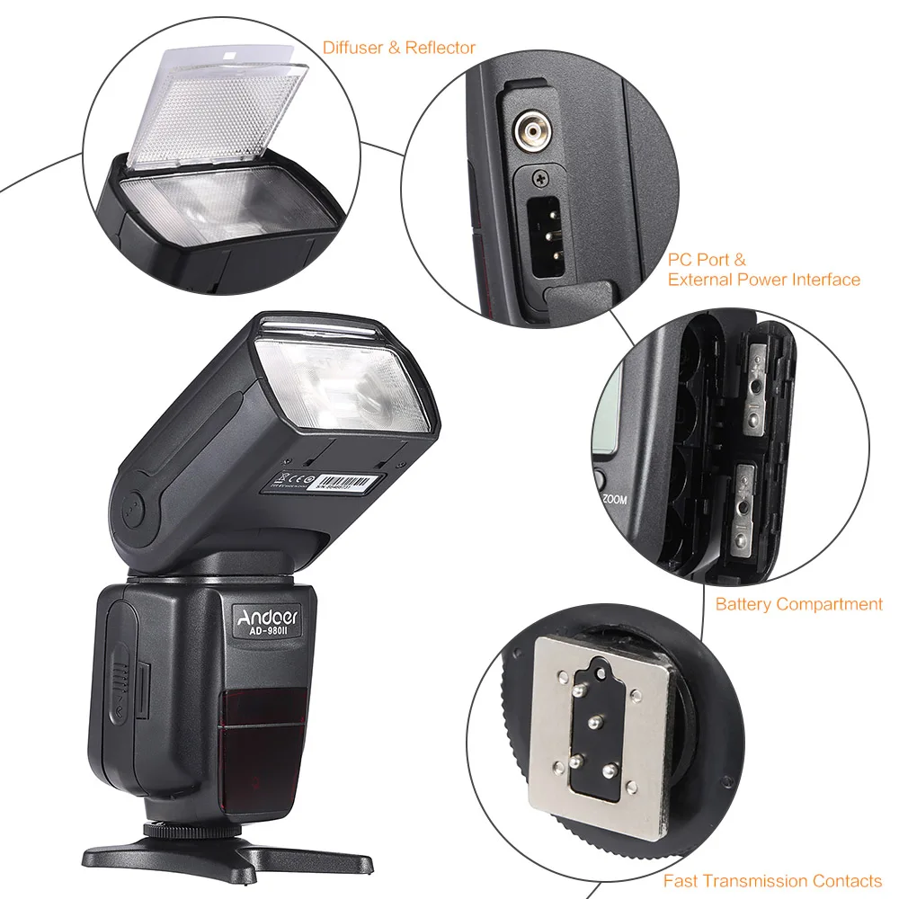 С большим количеством направляющих GN58, Andoer AD-980II действительно хорошо работает. Ведущая высокоскоростная вспышка sync составляет до 1/8000s, достаточно, чтобы захватить удивительный момент. Его также можно использовать в качестве главного или подчиненного блока,