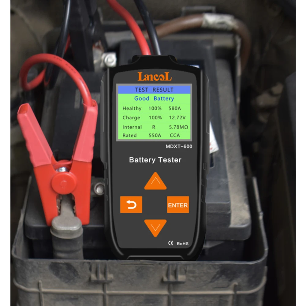 MDXT-600 тестер батареи с цветным ЖК-дисплеем. Вы можете просмотреть последние 20 групп данных через наш тестер батареи. С передовой технологией тестирования проводимости, он может легко, быстро и точно измерить фактические холодные Скручивающиеся Ампер способность транспортного средства уставившись батареи, здоровое состояние батареи, которая может достичь быстрого ремонта транспортного средства.