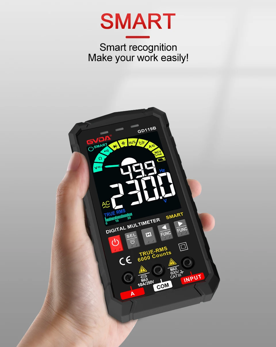 Умная функция (напряжение переменного/постоянного тока, сопротивление и непрерывность): Да