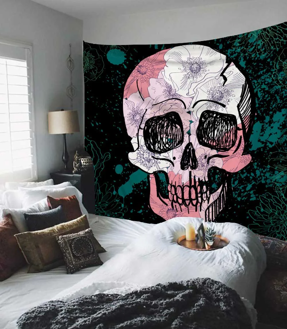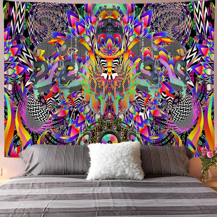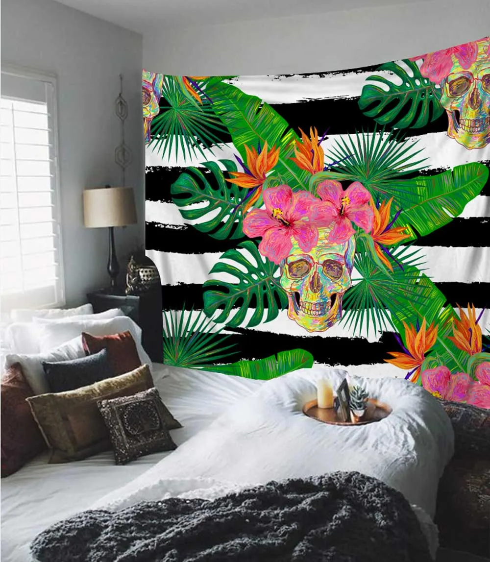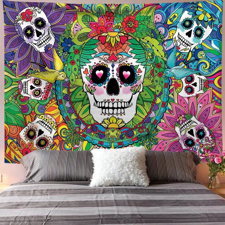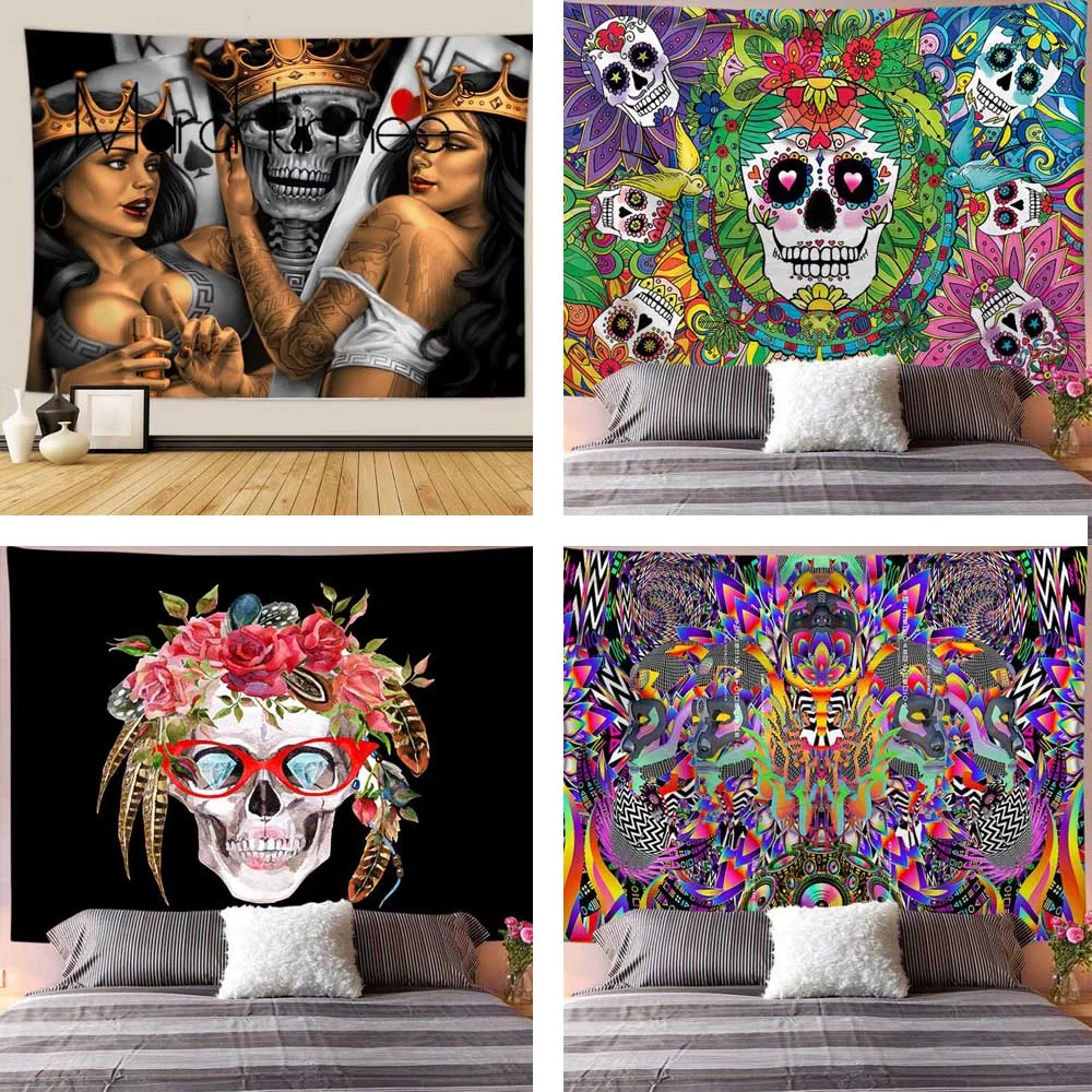 Psychedelic King череп полиэстер гобелен настенный для гостиной Цветочный Череп сексуальная леди гобелены Декор для дома, покрывало