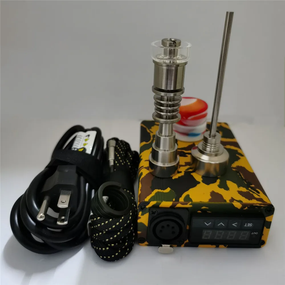 Спецификация: Светодиодный экран Катушечный шнур кевлар оболочка, 1,5 м/5 футов Провод сопротивления: Ni Cr 80-20 Изоляционный материал: MgO Термопласт типа Максимальная температура оболочки: 1292 °F Die Электрическая прочность: 800V A/C Допустимая мощность: + 10% (+ 5% по запросу) Допуск на сопротивление: + 10% (+ 5% по запросу) Длина катушки: + 1 мм Посылка: 1 x PID блок контроля температуры 1 х нагреватель катушки Kelvar 1 х Кабель питания 1x6 в 1 Гибридный кварц и титановый гвоздь 1 х карбюратор и инструмент для dab 2x силиконовые банки 1x высококачественный чехол на молнии