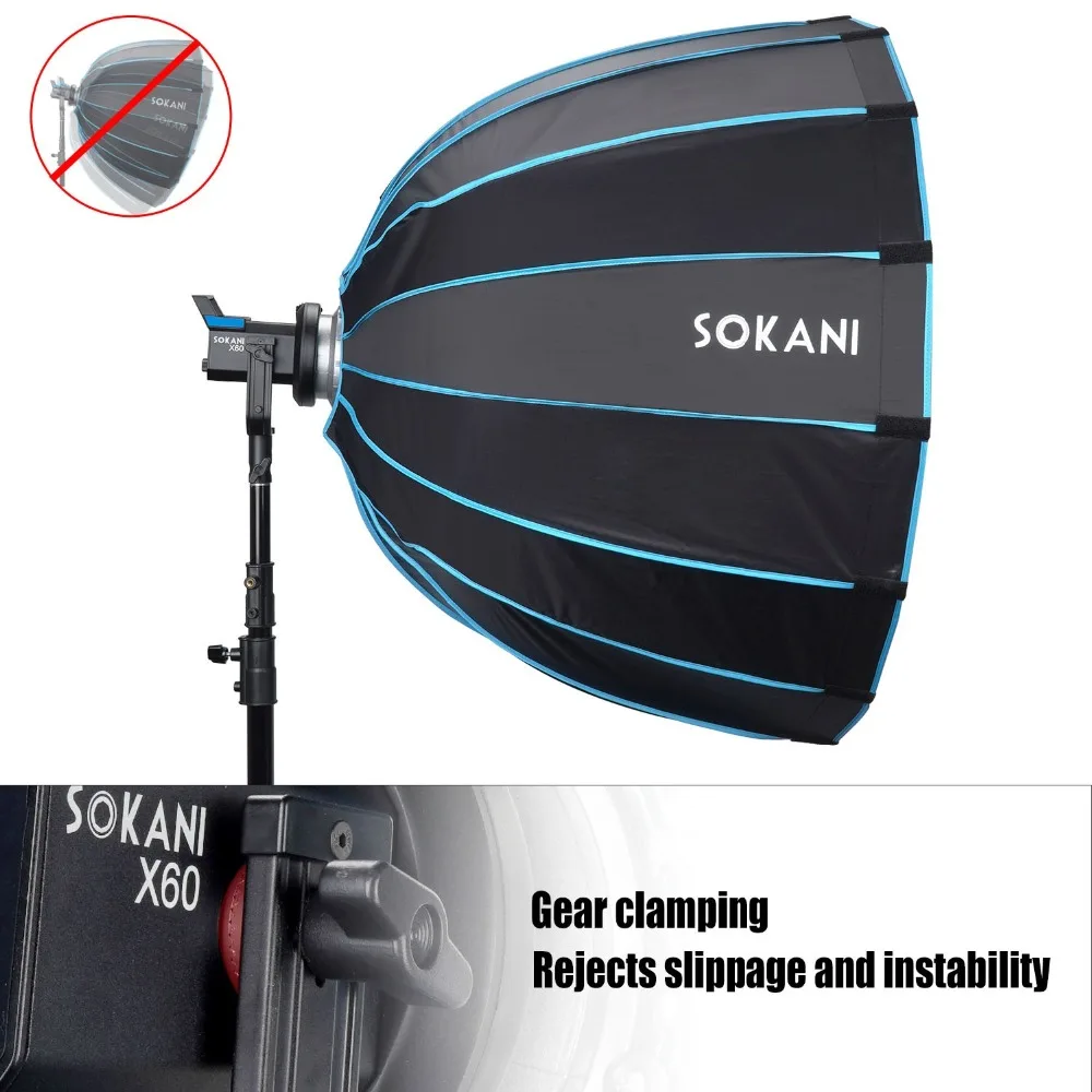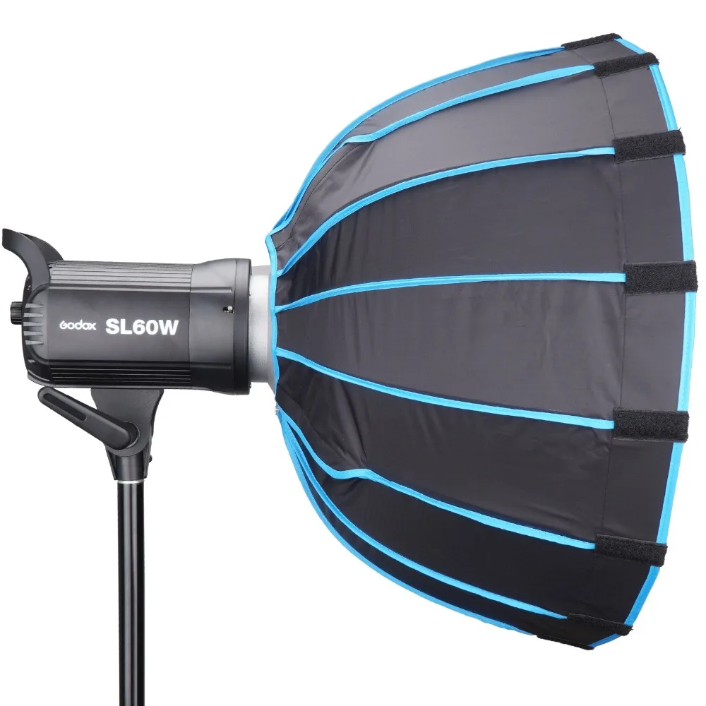 Параболический Большой Глубокий параболический дизайн, равномерный светильник. Глубокая параболическая форма софтбокса создает даже освещение с качеством обертывания и естественным видом catchlights. Светильник от центра до края постепенно уменьшается, и светильник равномерно меняется, создавая чрезмерно гладкий и уникальный светильник, который очень подходит для портретов и коммерческих портретов.