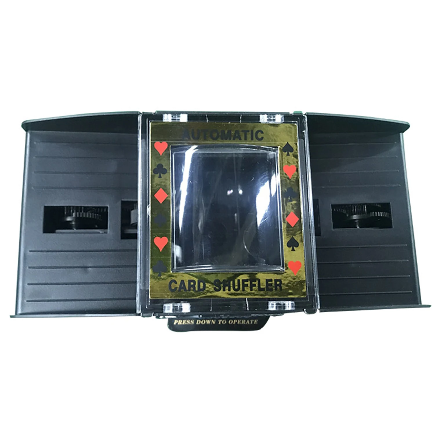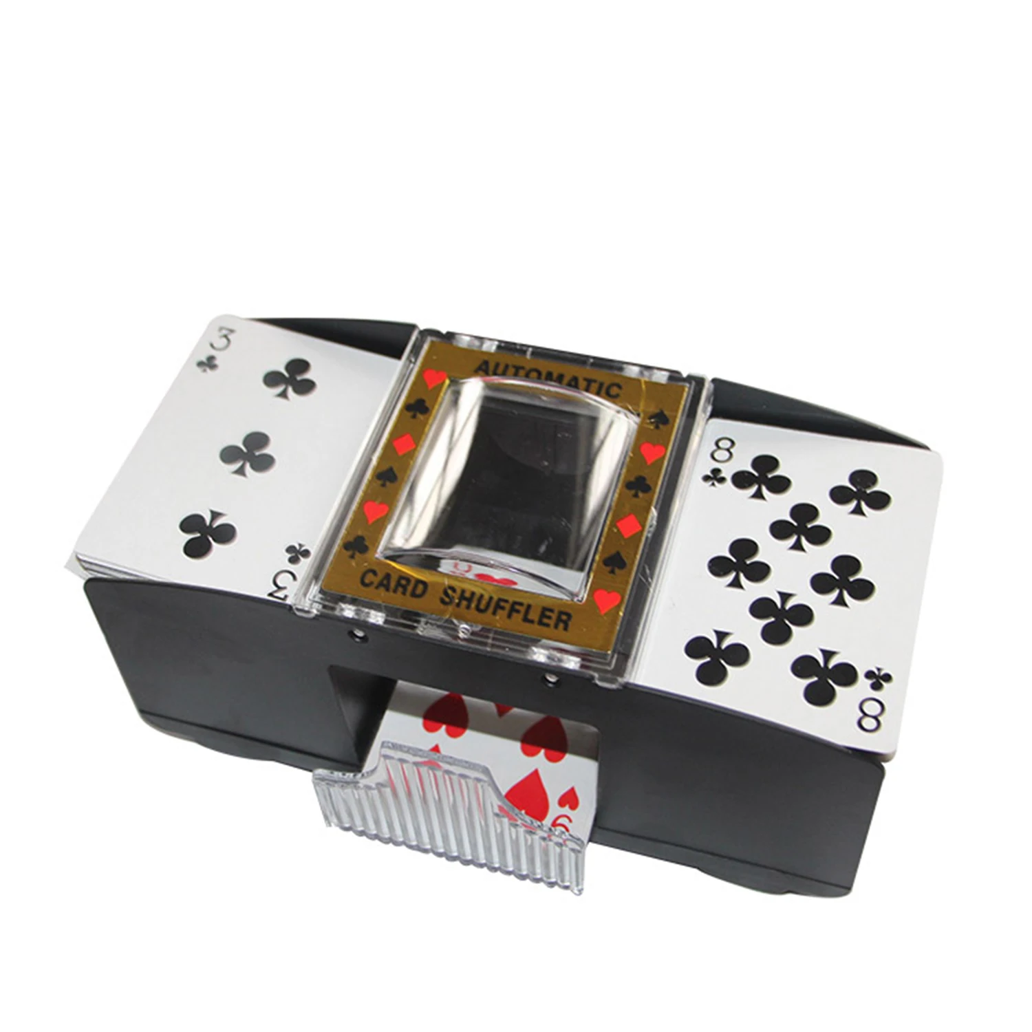 Этот автоматический дозатор идеально подходит для любой домашней игровой комнаты. Просто нажмите переключатель в нижней части машины и через несколько секунд лоток для сбора карт раскроет легко, но эффективно shuffled карты. Отлично подходит для праздничных вечеринок, кроме того, это для рождества, тематические вечерние и т. Д.