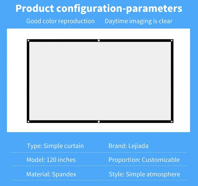 Never Miss OUR HIGH Quality Projector Screen,It will be your projector’s best friend, start a new way of entertainment. 60/72/84/100/120/150 inch HD 16:9 EXCELLENT Movie Screen made from natural polyester fabric. You will never believe that such a little package will turn into projection screen, lights weight and portable, you can fold it in small size and take it wherever you want!