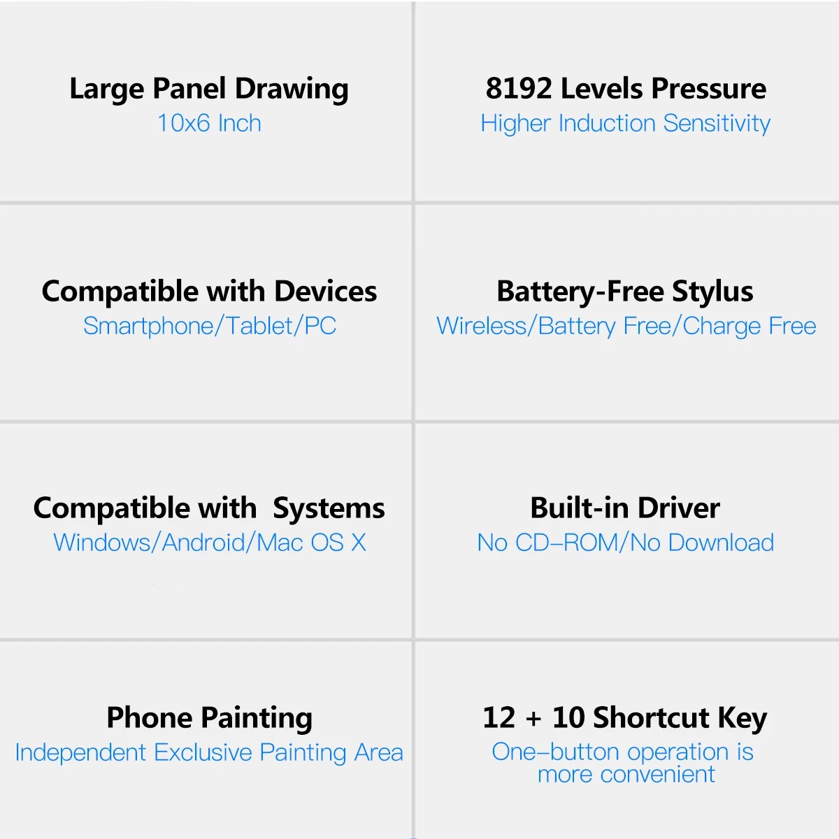 Сильная Совместимость:Совместимость с Windows XP/Vista/7/8/10, Mac OS X10.7-10.13, Android 5,0 и выше; Программа драйвера работает с программным обеспечением, таким как Adobe Photoshop, Adobe Illustrator, Adobe Fireworks, Adobe Pierre, Macromedia Flash, SAI, Zbrush и многое другое.