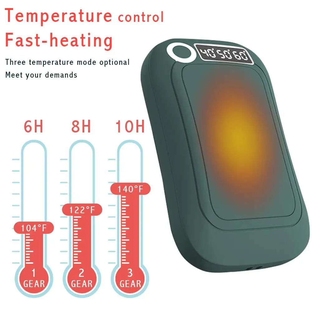 2. Поддерживает длительную температуру-быстрое повышение температуры в течение 3 секунд. Есть 3 вида температуры дисплея 40 ℃/50 ℃/60 ℃, вы можете регулировать температуру в соответствии с вашими потребностями, 6 часов при 40 ℃, 8 часов при 50 ℃, 10 часов при 60 ℃, большинство теплых рук на рынке может работать только в течение 4 часов. Одна полная зарядка занимает 3-6 часов.