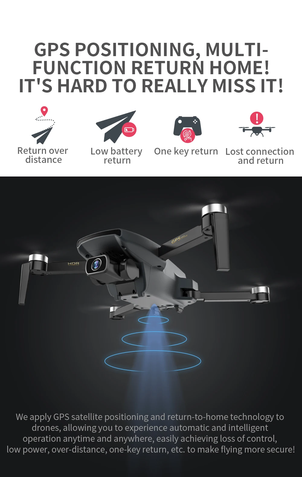 Trajectory flight, speed adjustment,real-time transmission,one-key return,MV picture and video sharing