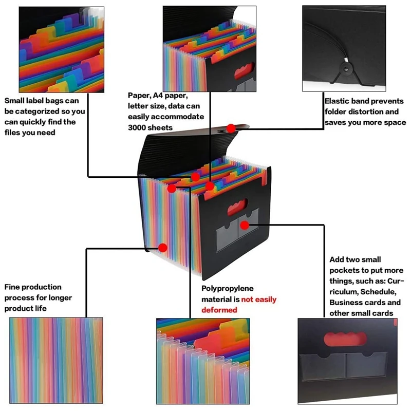 Расширяющийся ящик для папок, 24 отделения, пластиковые расширяемые папки для файлов, аккордеон, органайзер для документов, А4, размер буквы