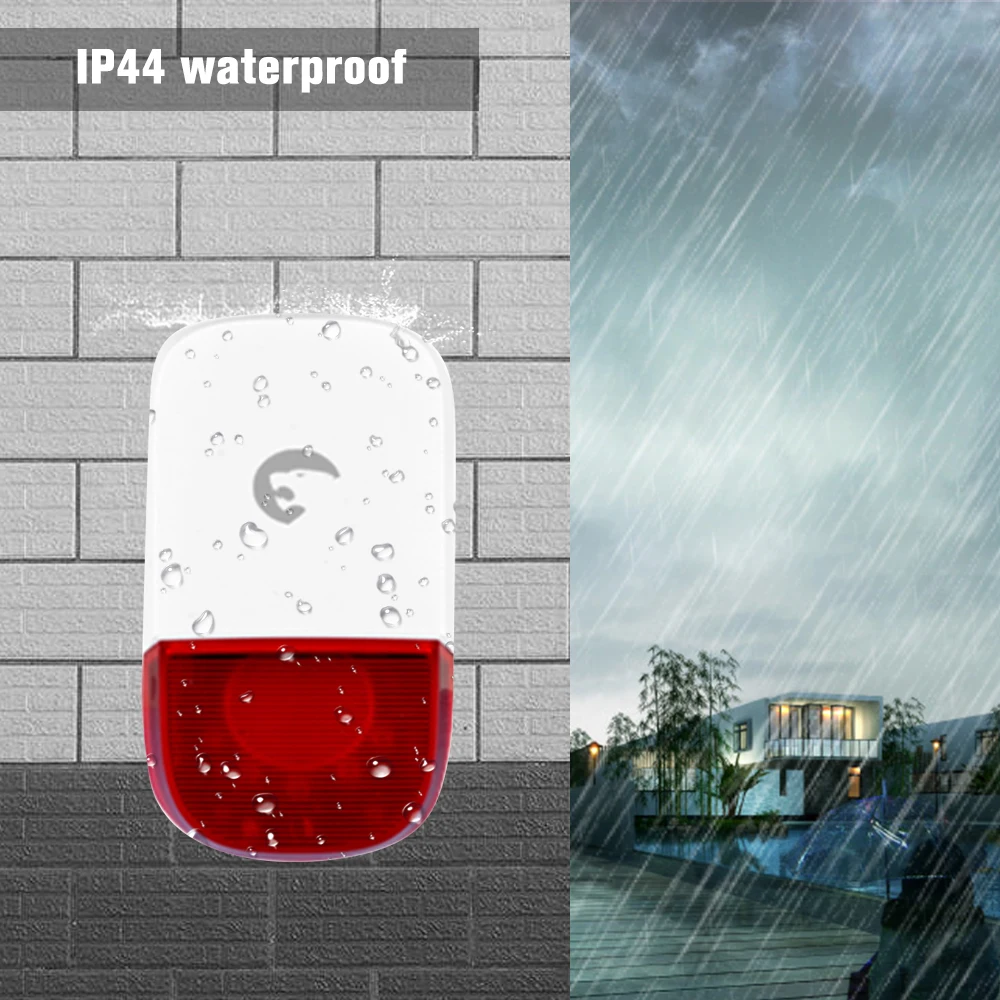 * IP44 водонепроницаемый, сирена может быть установлена на открытом воздухе, так как она не боится дождя. Идеальная сирена для домов с садом. Легко установить без отладки и проводки.