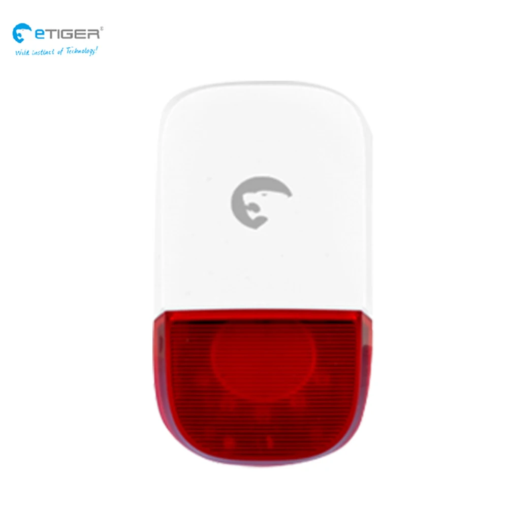 * 433 МГц Etiger ES-S7B работает как дополнительная сирена, подключенная к существующей системе сигнализации, eTIGER SECUAL alarm host, так что вам не нужно тянуть кабель.