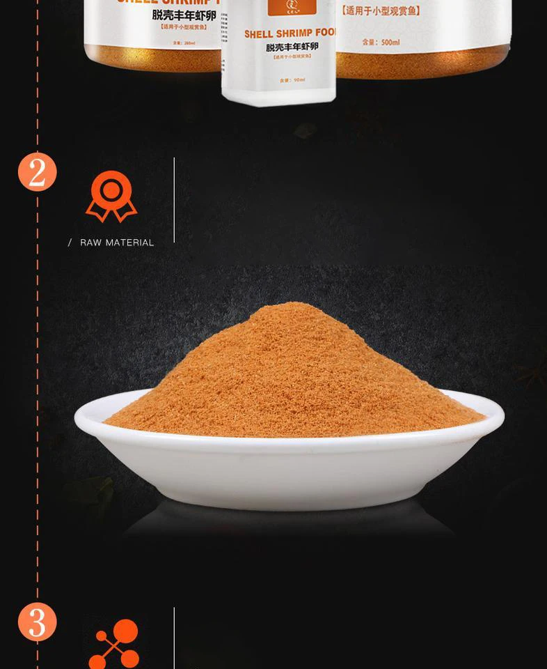 3. Полезно для молодой рыбы, и она имеет сбалансированное питание без инкубации и функции продвижения роста, увеличение цвета тела молодой рыбы полезно.