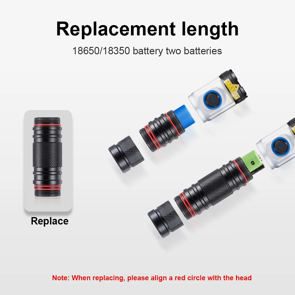 Используйте батарею 18650: Используйте конвертер 18650 для расширения фонарика, а затем установите батарею 18650.