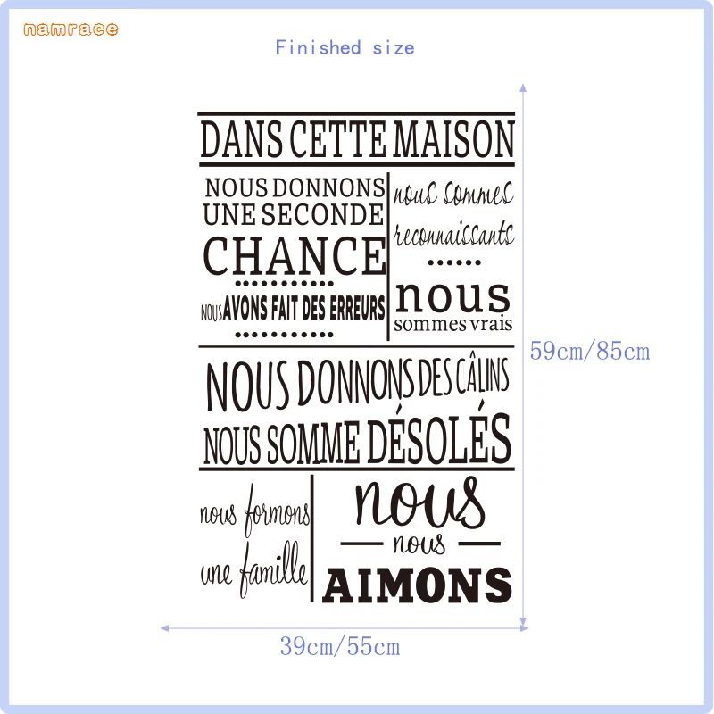 Искусство новый дизайн дешевые украшения дома виниловые французские правила характер Съемная Наклейка на стену цитата слово номер гравировка наклейка SP-117