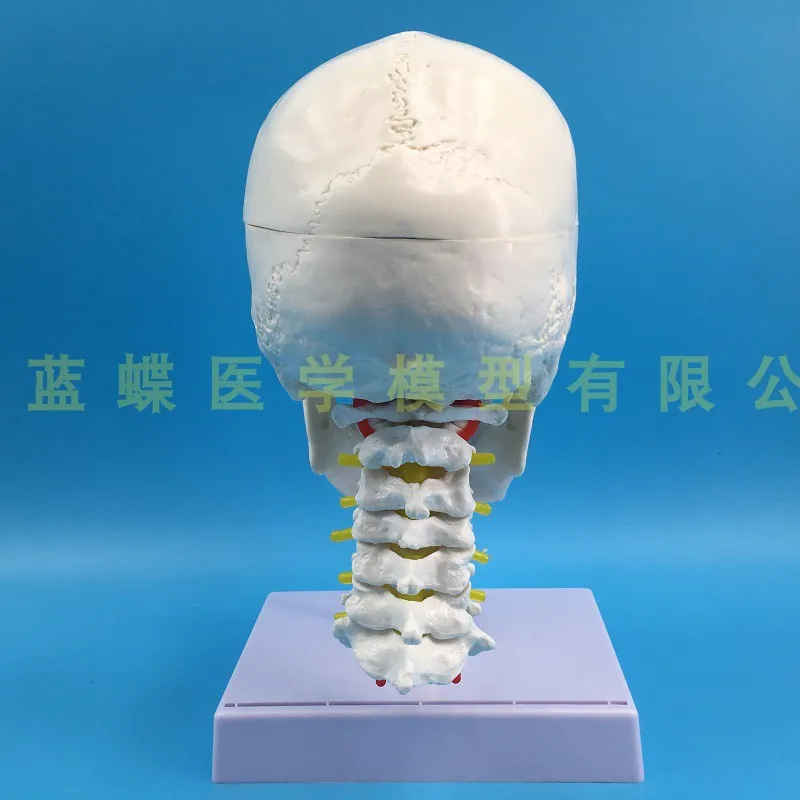 本模型由头骨和 7 节颈椎组成,带颈椎动脉,有底座.