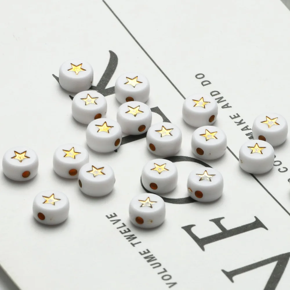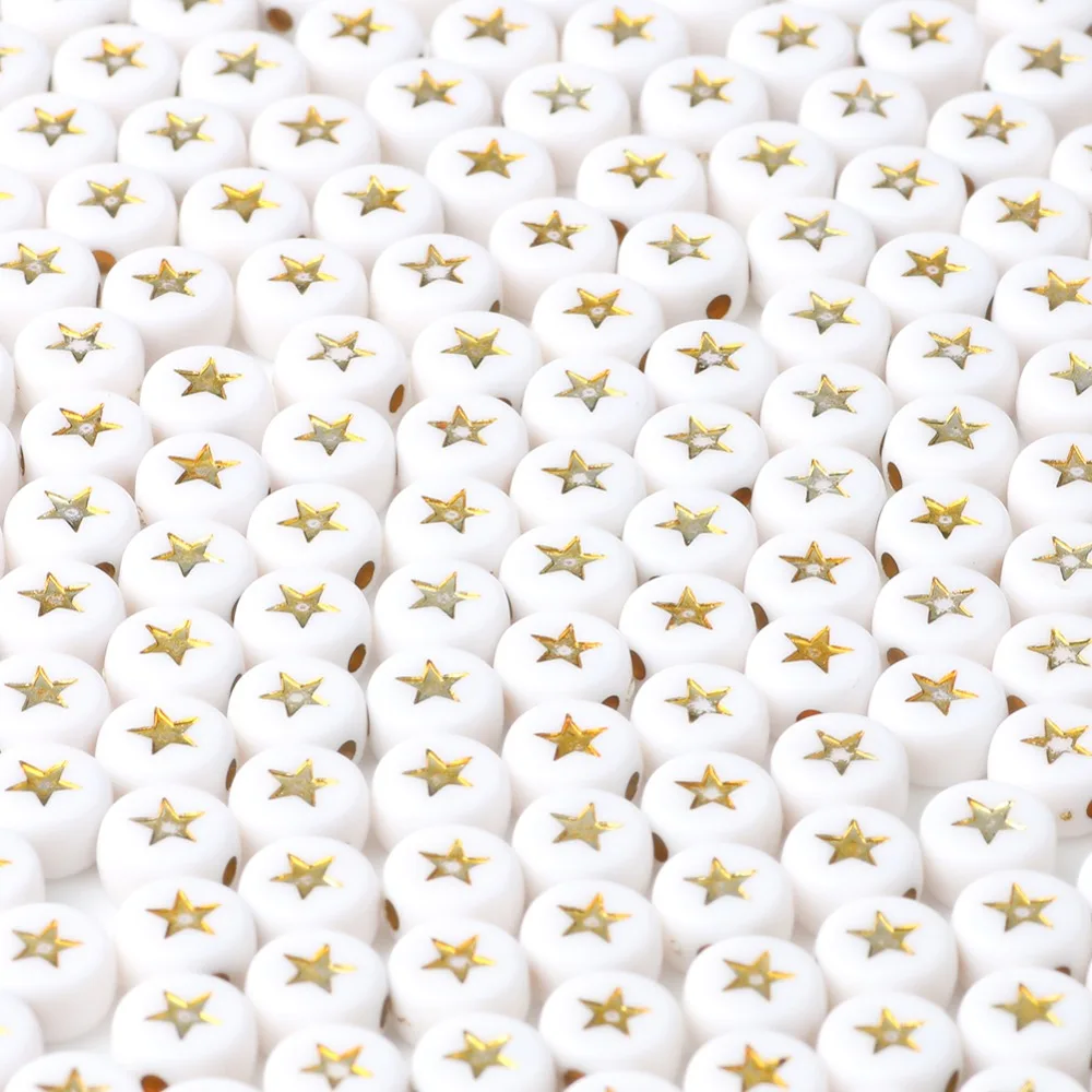 500 шт Круглые белые акриловые пластиковые бусины Diy Детский браслет золотые звезды свободные бусины для изготовления ювелирных изделий Diy Женское Ожерелье