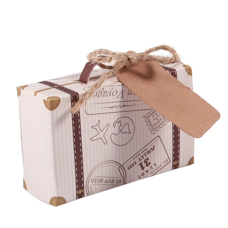 Дизайн Мини-чемодана с ручкой, используйте их, чтобы поблагодарить гостей за участие в вашем приключении и желаем им безопасного путешествия домой. Оригинальные коробки поставляются в плоскую упаковку для лучшей защиты, нужны простые DIY перед использованием.
