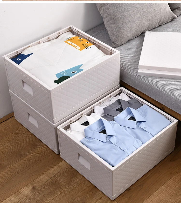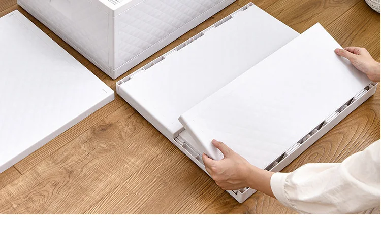 Цвет: белый Модель: складная коробка для хранения Область применения: обувь, нижнее белье, CD, пульт дистанционного управления, носки, свитера, ювелирные изделия, журналы, Канцтовары, мобильные телефоны, ткани, широкий спектр косметики, бюстгальтеры, медицина, игрушки, мелочи, одежда, грязная одежда, шнуры для наушников/провода Может быть портативным: нет Материал: пластик Место хранения: автомобиль, домашнее хранение Складывается ли: Да Доля новых пластиковых материалов: 100% новые материалы Характеристики: складное хранилище Размер: Маленький [45*30*22 см], Большой [50,5*42,5*24 см] Стиль: простой Емкость: около 60 л