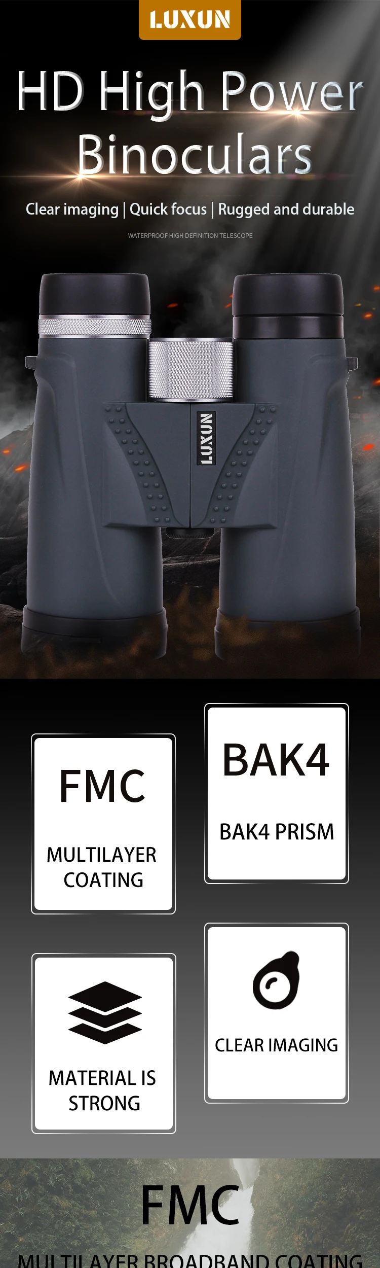 Бинокль LUXUN 12x4 2, водонепроницаемый мощный профессиональный телескоп с функцией ночного видения для охоты