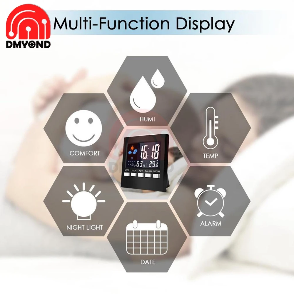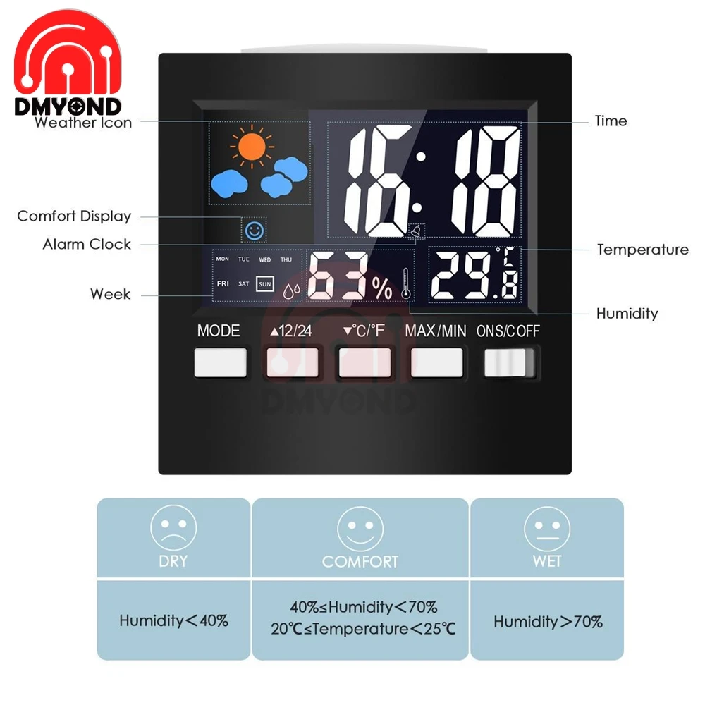 Цифровые часы для измерения влажности: Этот многофункциональный термометр-гигрометр, таймер и будильник могут предоставить Вам Надежные показания влажности/температуры/времени, чтобы вы могли настроить максимальный комфорт в вашем доме.