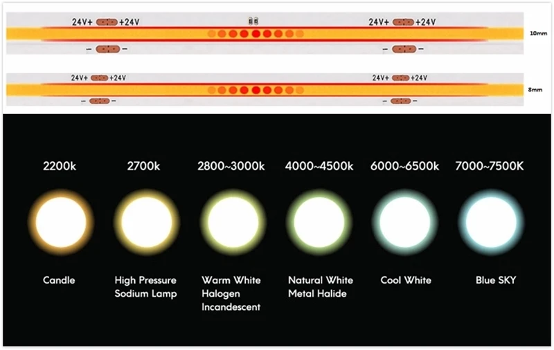 Пецификация: Входное напряжение: 12В/24В Цветовая температура: желтый (2200-2400K), теплый белый (3000-3200K), натуральный белый (4000-4200K), холодный белый (6000-6500K), красный, зеленый, синий. Индекс цветопередачи: Ra>90 Рабочая температура: -20 ℃-+ 45 ℃ Температура хранения: -20 ℃-+ 60 ℃ Угол обзора: 180 °