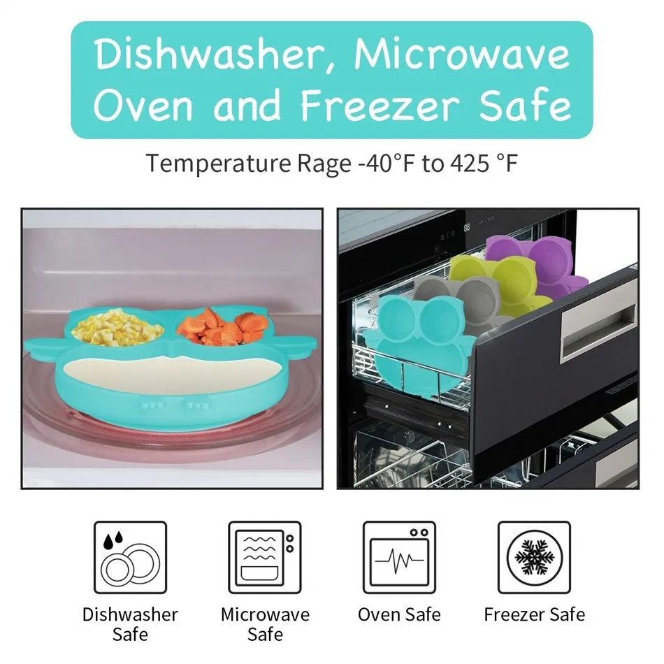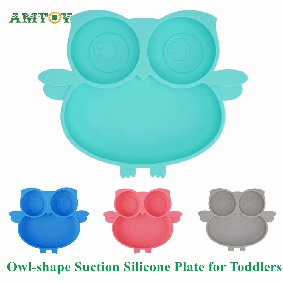 Силиконовая тарелка с присоской совы для детей ясельного возраста, для самостоятельного кормления, для хранения, разделенная чаша и посуда для малышей и детей, для большинства стульев для волос, подносы для микроволновой печи посудомоечной машины, безопасные