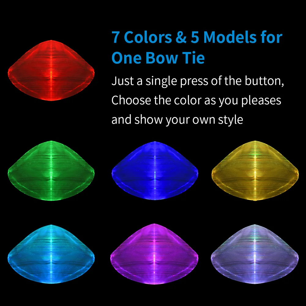 7 цветов и 5 моделей для одного галстука-бабочки, просто одно нажатие кнопки, выберите цвет, который вам нравится, и Сейте свой собственный стиль.