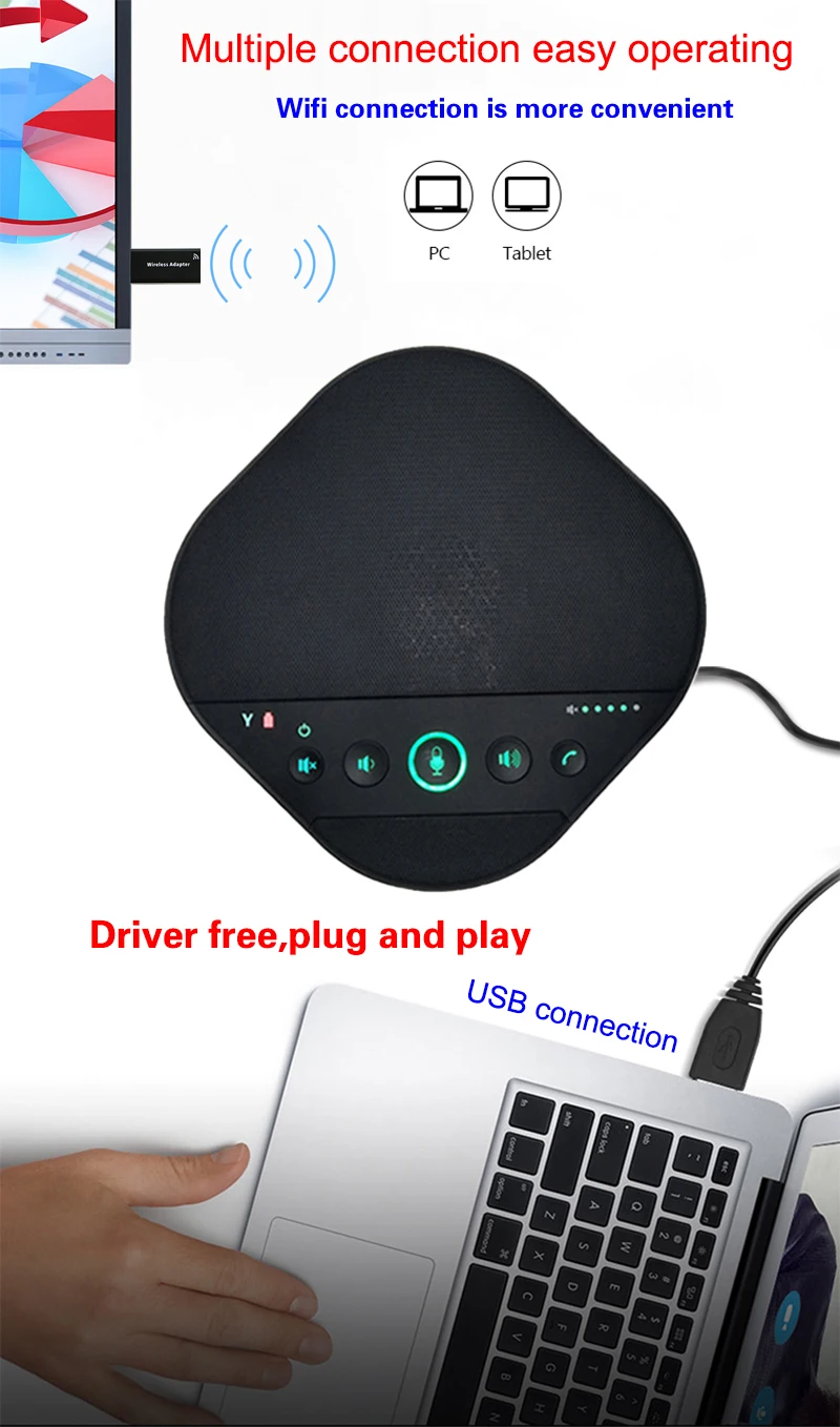 USB 5.8G WIFI Microphone Speaker Wireless Speakerphone with Powerful Loud Sound