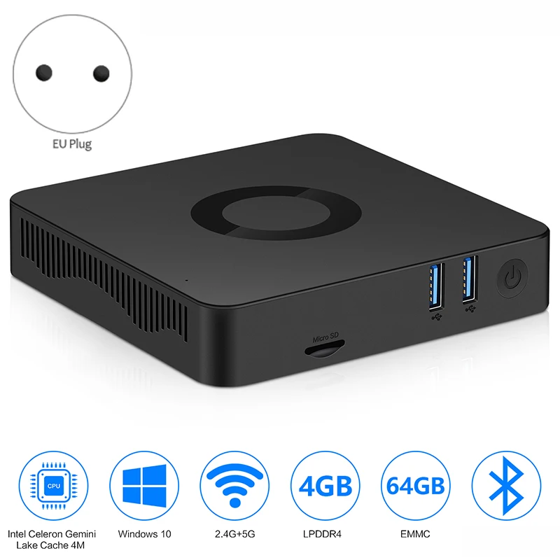 Четырехъядерный Мини ПК для Gemini Lake N4100 4 Гб 64 Гб Поддержка M.2 HD-MI/VGA двойной дисплей 1000 м для компьютера, штепсельная вилка европейского стандарта