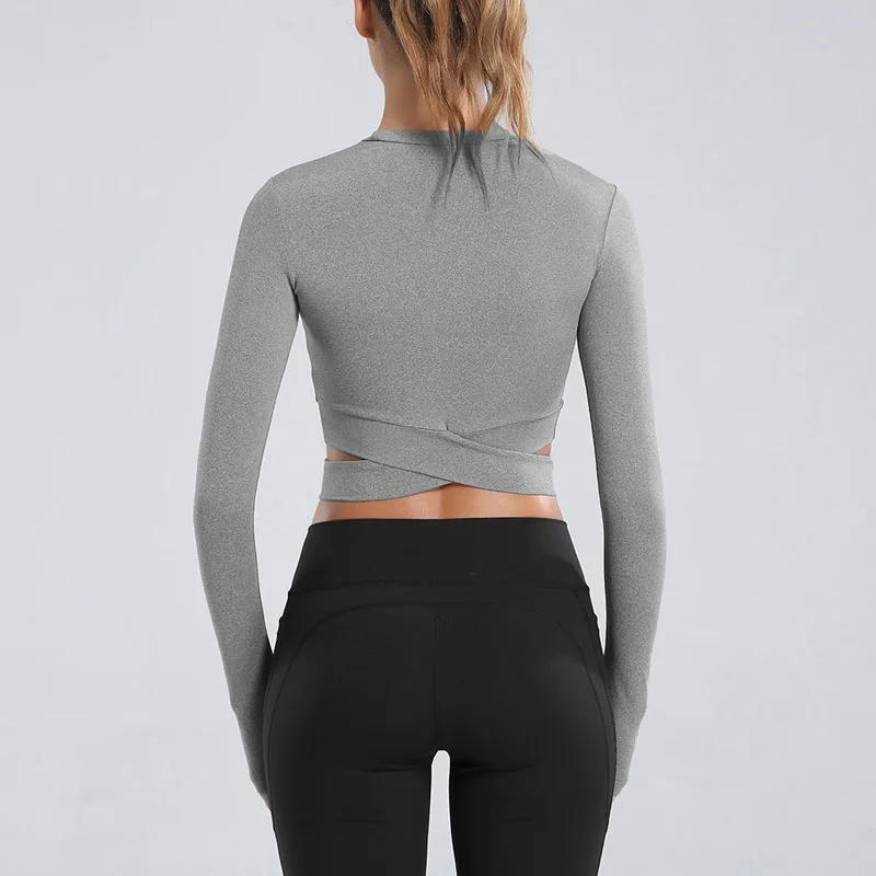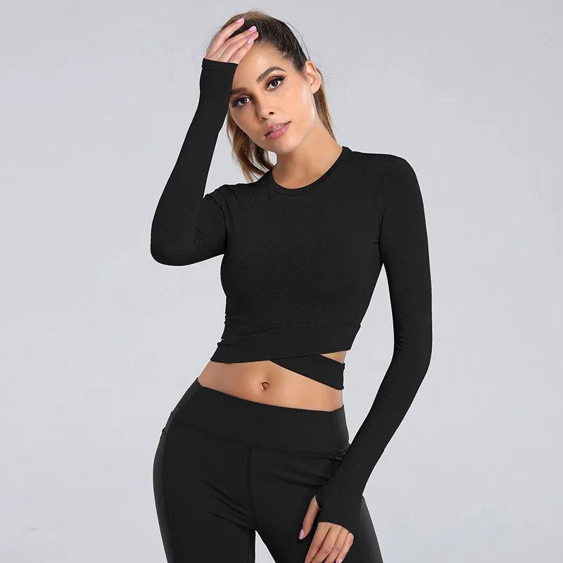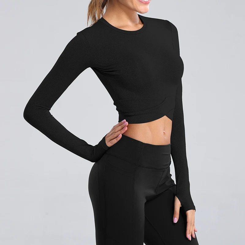 Особенности: сексуальные открытые футболки для йоги с пупком, быстросохнущие топы для фитнеса, тренажерного зала, однотонные спортивные рубашки для женщин, футболки для бега с длинным рукавом
