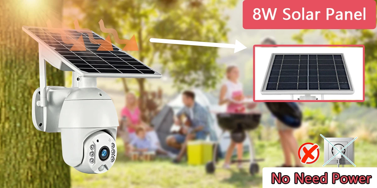 *Connect the camera to 8W Solar Panel and it will get non-stop power all day and all night. You can easily position the weather resistant solar panel to maximize sunlight exposure. It saves you the problem of charging the camera manually.
