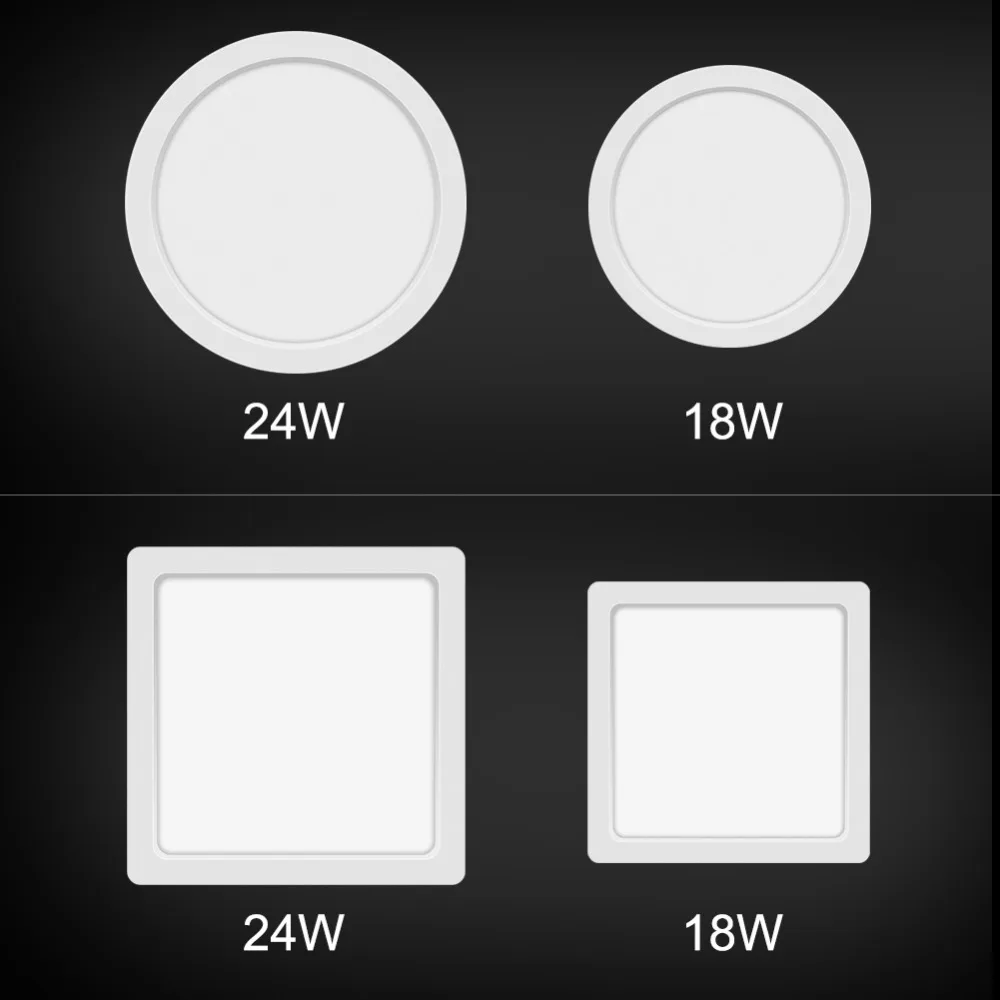 Мощность: 18 Вт/24 ВтУгол свечения (°): 120 °Модель формы: круглая/квадратнаяЦвет корпуса: белыйМатериал корпуса: алюминий + акриловая крышкаРабочая температура: -20 -65 ° CСрок службы:> 30000 чВходное напряжение: 220 ВЦветовая температура: теплый белый/натуральный белый/холодный белыйПакет включает: