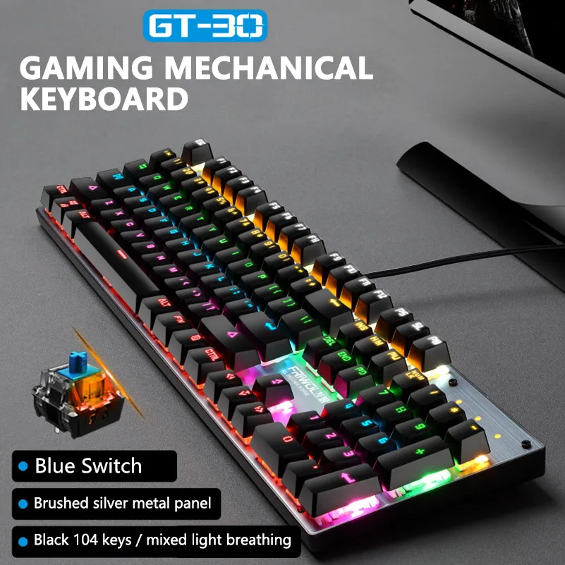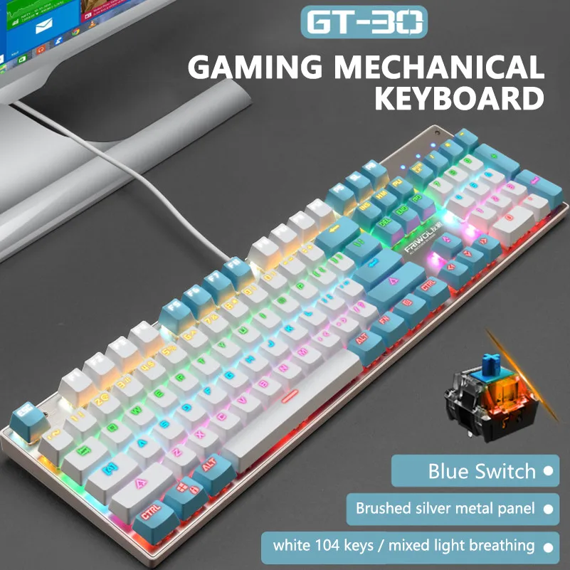 New Arrival Gaming Mechanical Keyboard USB Wired 104 keys with RGB Backlight Blue Switch Computer Wired Keyboard for PC Laptop