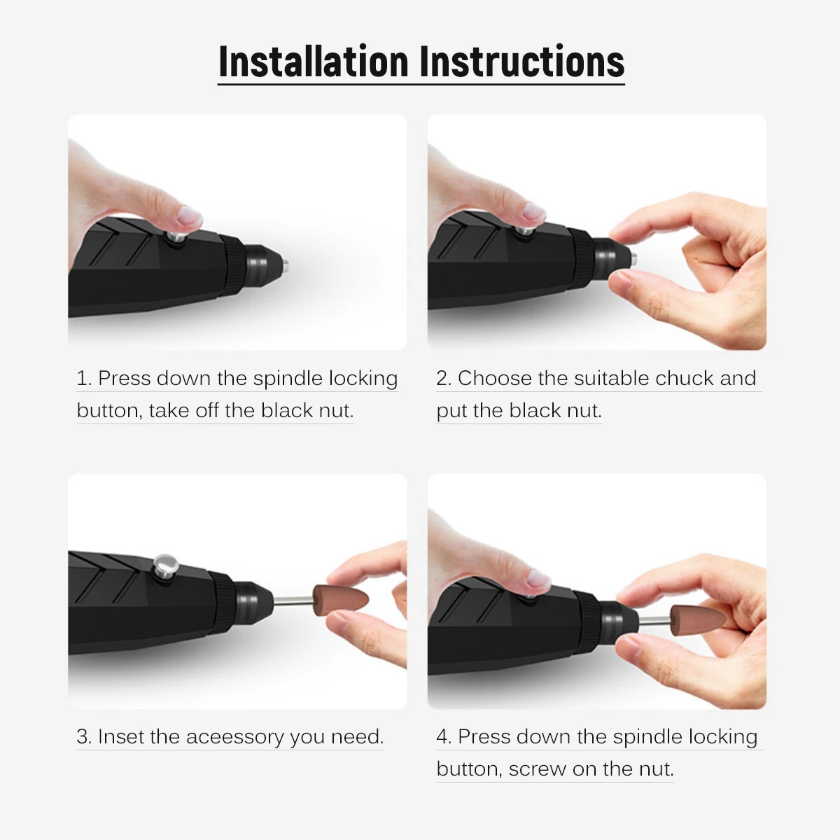 Высокоточный Зажимной патрон-- Сочетание всех медных валов, медных Коллет и металлических гаек патрона, зажимает сверло/пильный диск/шлифовальный заусенец плотно, обеспечивает быструю установку аксессуаров или замену с легкостью.