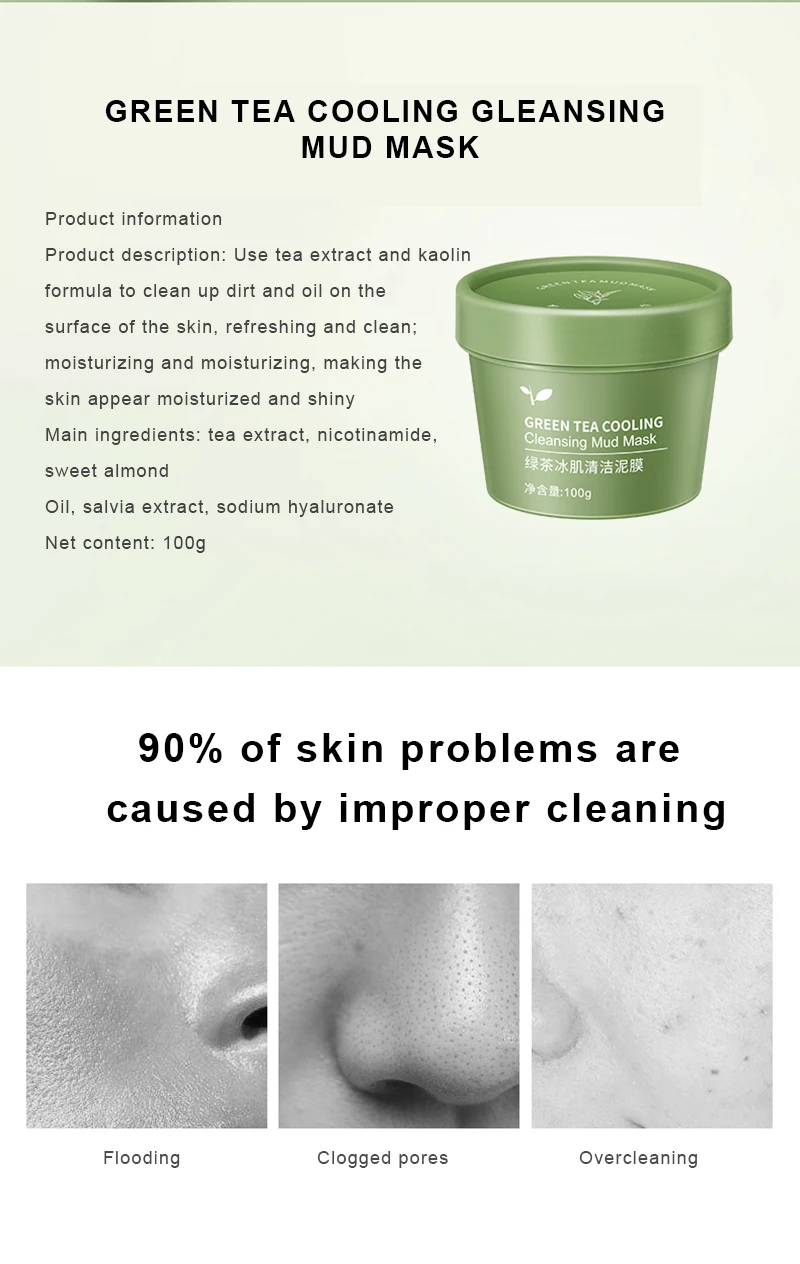 Выбираются экстракт чая и формула каолина, которые могут эффективно очистить грязь и масло на поверхности кожи, освежающий и чистый.