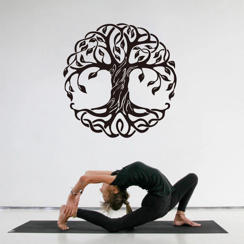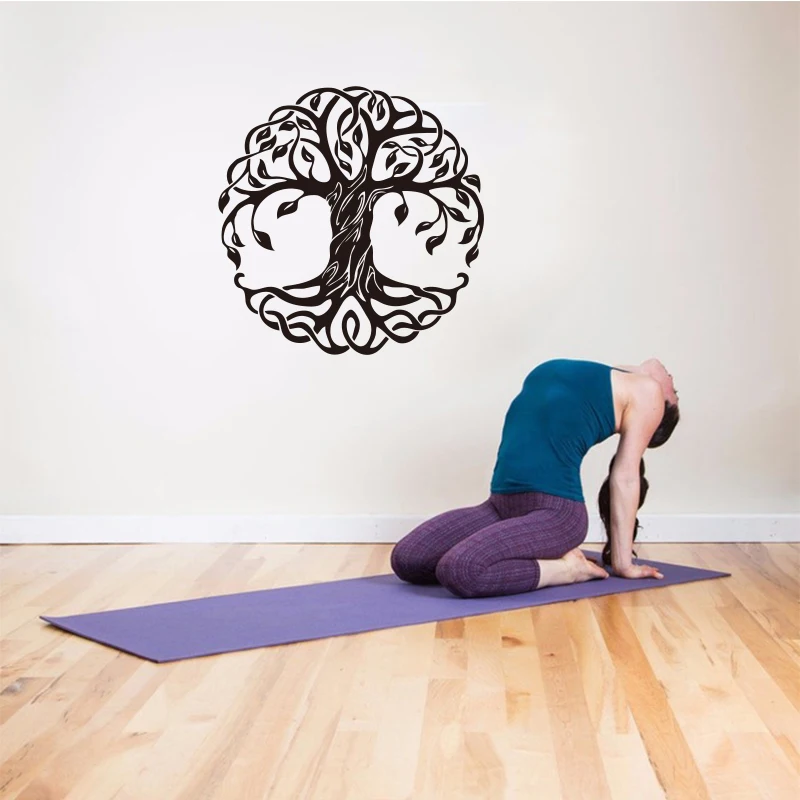 Украшение для дома Мандала дерево виниловая наклейка на стену Наклейка для фитнеса йога Дерево жизни Настенная Наклейка для студии йоги настенная SP-124
