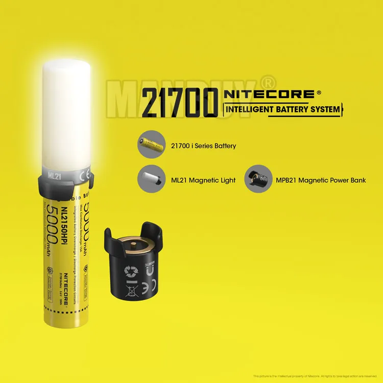 Интеллектуальная аккумуляторная система 21700-это инновационное решение для питания, которое состоит из батареи серии NITECORE 21700 i, магнисветильник льника ML21 и магнитного внешнего аккумулятора mpb21. Разработанный для обеспечения постоянного источника питания и минимизации нагрузки на активный отдых, он может легко обеспечить необходимый светильник и передачу энергии между различными устройствами на ходу.