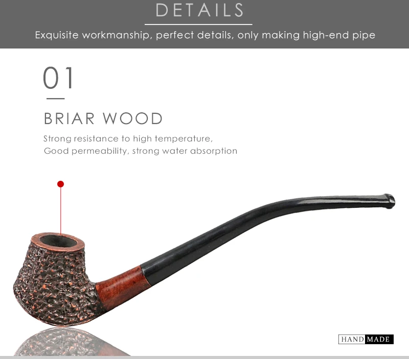 【BRIAR PIPE】: Выбранный Средиземноморский корень бриарных конкреций, он красивый и долговечный, красивое деревянное зерно, тепло и поглощение воды. Несомненно, briar wood выбран лучшим деревом для изготовления труб. Грандиозное мастерство: на протяжении многих поколений наши трубы ручной работы были усовершенствованы нашими датскими ремесленниками, которые тщательно формуют лучшее качество briar для точных спецификаций. Каждая труба обеспечивает постоянный дым снова и снова. 【Красивая древесина 】: это соответствует деревянному зерну. Древесное зерно корпуса трубы вертикально распределяется от нижней части чаша трубки к верхней части, как пламя при горении, плотное и прозрачное «Пламя зерна». Рот и низ трубы плотные и прозрачные «птичий глаз», Которые являются текстурой, образованной поперечным сечением внутреннего трубопровода корня briar и узора маленького круга спирального кольца. 【Удобный и здоровый 】:3 мм фильтр дымохода сохраняет курение более здоровым. 【COOL,CLEAN SMOKE】: Этот светильник, briar pipe более гигроскопичен, чем обычные деревянные трубы, обеспечивая сухой, ароматный дым, а также давая им свое имя. Материал чаши: средиземноморский Бриар. Материал стебля: Акрил-черный. [Отличный подарок для любителей курения]: отличные подарки для любителей курения и отличный выбор подарков для Дня отца, Рождества, Дня благодарения, Дня учителя и т. Д. Флуоресцентный