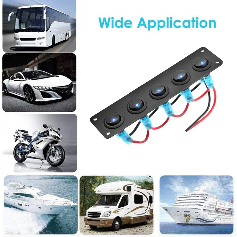 12-24 В 5 банд круглый Даш кулисный переключатель Панель синий светодиодный для RV лодки яхты морской автомобиль автобус Кемпер и т. Д. IP67 водонепроницаемый 100% новый