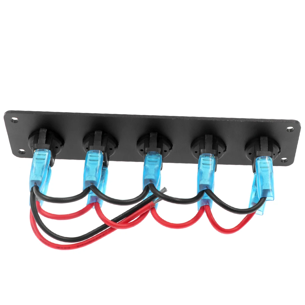 Подходит для 12В-24В автомобилей, RV, караванов, прицепов, автобусов, лодок, яхт, морских и т. Д. 5-кнопочный синий светодиодный выключатель, может управлять электрическим оборудованием внутри автомобиля по желанию. Легко устанавливается, может устанавливаться горизонтально или вертикально. Изготовлен из высококачественной алюминиевой панели и АБС-материала, прочный и водонепроницаемый. Винт из нержавеющей стали в комплекте, помогает надежно установить панель переключателя.