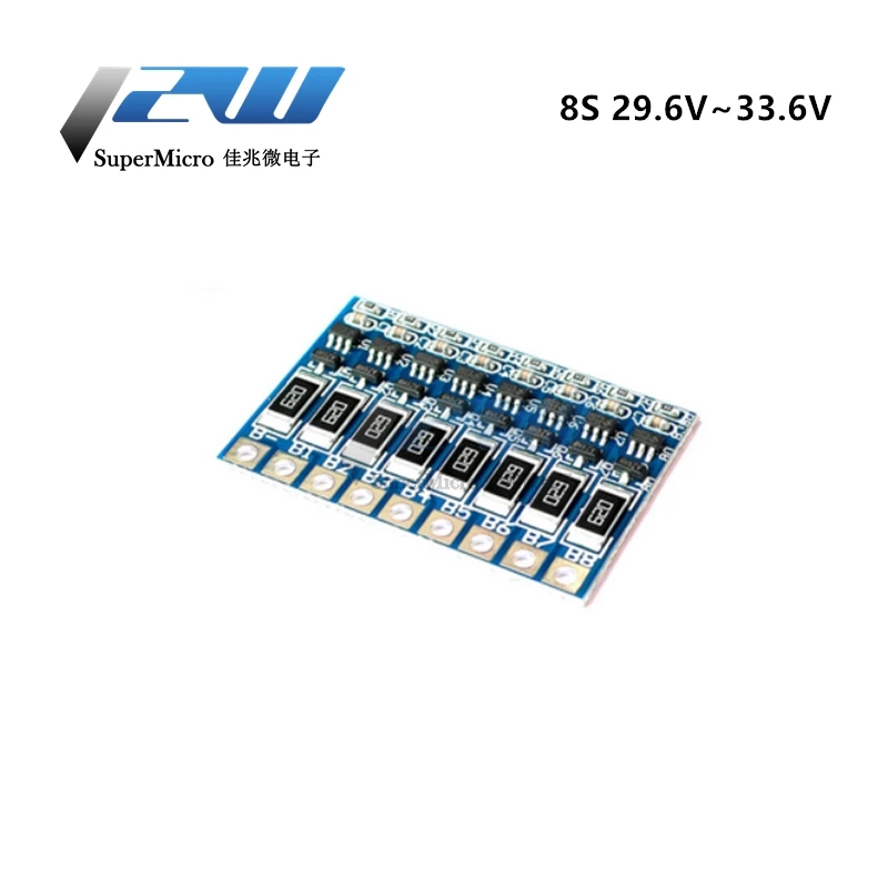 Особенности: 4,2 V выравнивание напряжения, выравнивания ток 66mA; Описание точки припоя: B-Подключите отрицательный полюс аккумуляторной батареи В1 Подключите к контактам в батарее 1 и батарее 2 B2 подключается к контактам в батарее 2 и батарее 3 B3 Подключите к контактам в батарее 3 и батарее 4 B4 Подключите аккумулятор 4 и аккумулятор 5 контактов B5 Подключите к контактам в батарее 5 и батарее 6 B6 Подключите к контактам в батарее 6 и батарее 7 B7 подключается к контактам в батарее 7 и батарее 8 B8 Подключите к положительному полюсу аккумуляторной батареи Размер изделия: 37,3*25,8*2,4 мм
