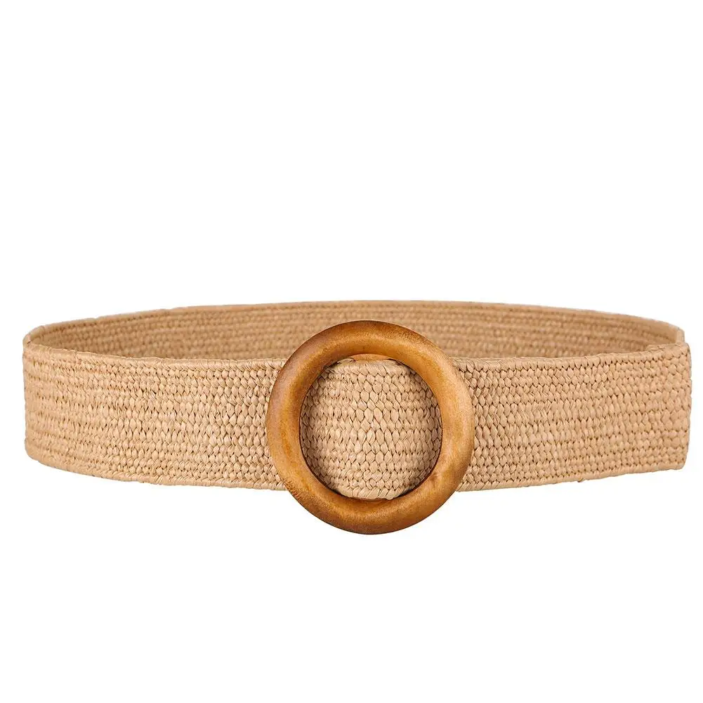 Винтажный женский круглый деревянный плетеный пояс с пряжкой Регулируемый Браслет