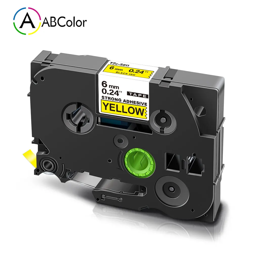 Название продукта: ABColor 6 мм TZe-S611 TZe S611 TZ-S611 TZeS611 прочная клейкая лента черная на желтой ленте TZe лента для принтера для сенсорного принтера Brother P