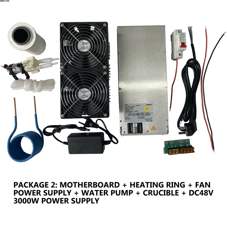 1. Размеры: длина, ширина и высота 240*120*85 (единица измерения: мм); 2. Размер нагревательного кольца: 70*60*73; 3. Входное напряжение: DC12-48V; 4. Максимальная мощность: 2500 Вт; 5. Максимальный рабочий ток постоянного тока: 50A 6. Максимальная температура прямого нагрева металлического железа составляет 800-900 градусов Цельсия 7. Максимальная температура тигель 1600 градусов Цельсия 8. Вес нетто продукта: