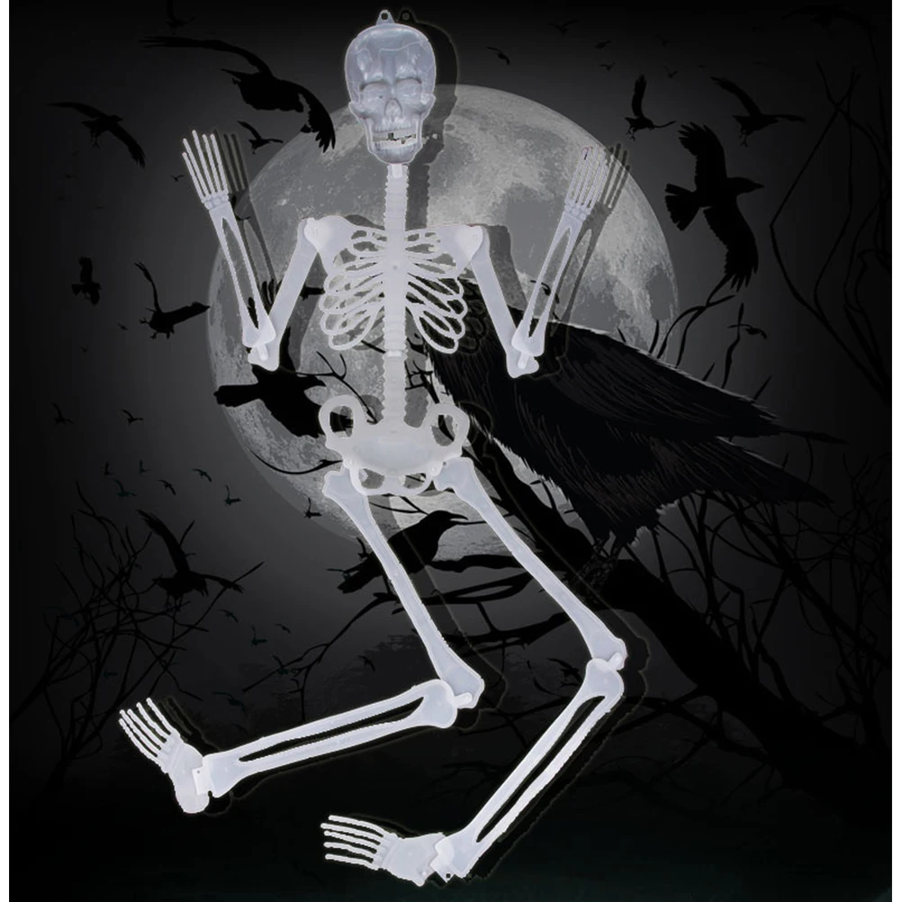 90 см страшные Декорации для Хэллоуина реквизит светящееся подвесное украшение на открытом воздухе вечерние светящиеся Ужасы подвижный скелет черепа